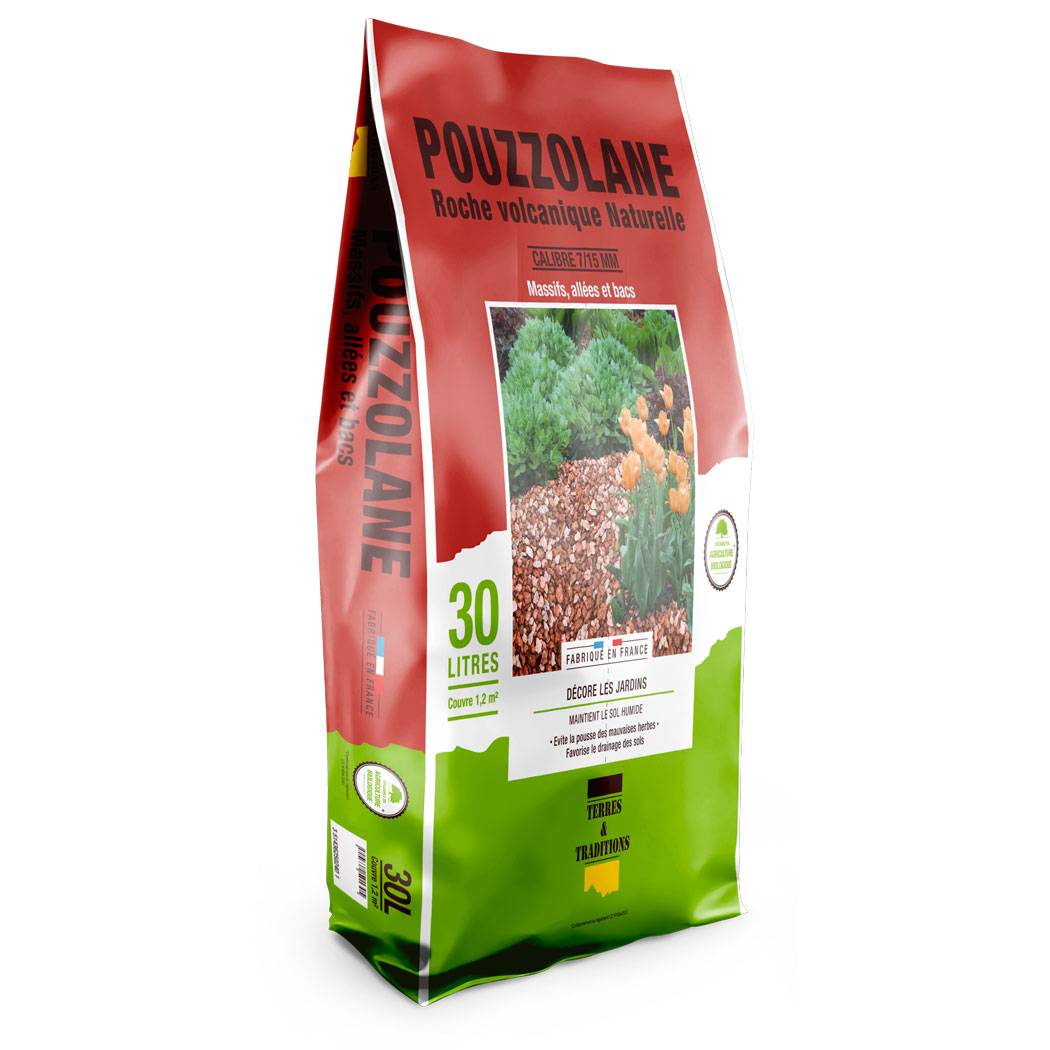 Pouzzolane : ce paillage naturel recouvre le sol et décore les massifs et les bacs tout en maintenant le sol humide en évitant la pousse des mauvaises herbes.